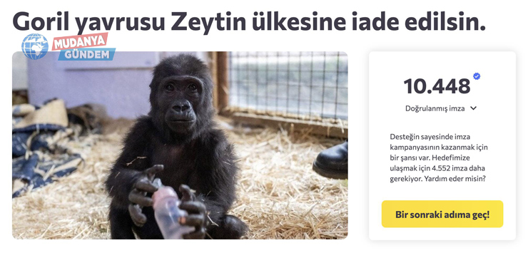 Goril Yavrusu Zeytin Ülkesine İade Edilsin kampanyasına katılmak için linke tıklayabilirsiniz