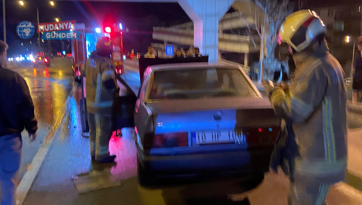 Bursa–Mudanya istikametinde saat 21.30 sıralarında seyir halinde bulunan 10 HP 100 plakalı otomobilde, motor kısmından duman yükselmesinin ardından yangın çıktı.